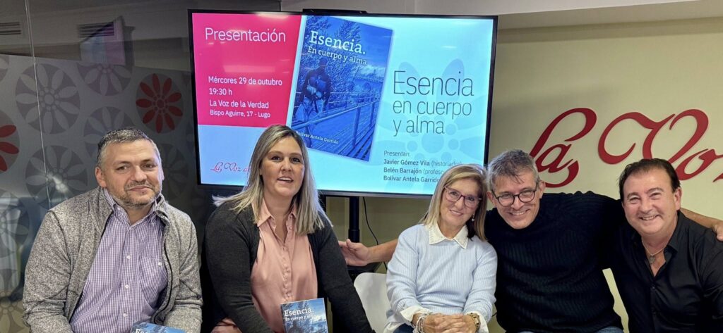Javier Gómez presidente de la FEAGC realizó la presentación del libro «Esencia, en cuerpo y alma» de Bolivar Antela Garrido en la Voz de la Verdad. Un libro escrito por un peregrino, un libro del camino, que habla del paso del tiempo, de como ser felices, de lo que te aporta el Camino… Un libro para tener en casa y cuando te asalte la inseguridad, el miedo, la angustia cogerlo.. tiene frases mágicas.